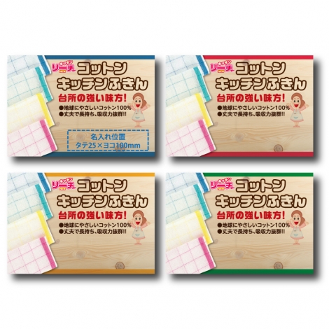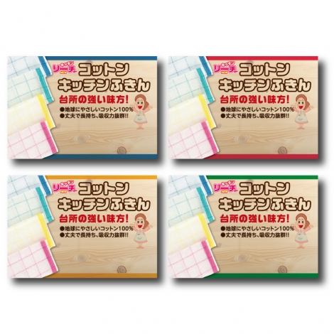 内容:コットンキッチンふきん×1枚(青、緑、黄、桃 4色 色指定不可)